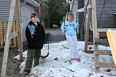 On April 21st, the kids had a snowday. The university wasn't closed so I had to work. You can see the kids watching me leave: